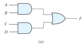 위와 같은 부울 함수 F가 있을 때. 부울 연산의 순서대로 괄호에서 AND,OR 연산까지 설계를 한다면 (a)와 같다.