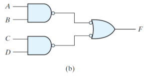 또한 위에서 배운것과 같이 NAND gate를 가지는 회로로 구현하기 위해 bubble을 붙여 이용하면 (b)와 같다.
