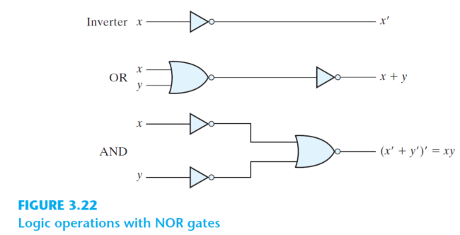 NAND와 같이 NOR gate도 범용 게이트이다. (universal gate)