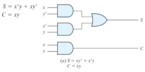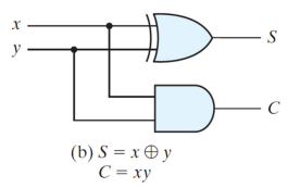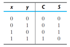 이때 carry를 의미하는 출력 C는 두 입력이 모두 1일 때만 1이 되고, S의 입력은 bit합의 끝자리 유효숫자를 나타낸다.