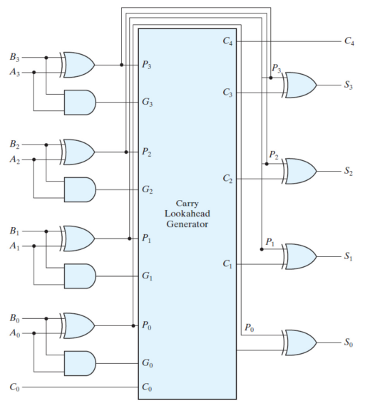 이렇게 캐리 룩어헤드 생성기의 회로를 거치는 4비트 가산기는
