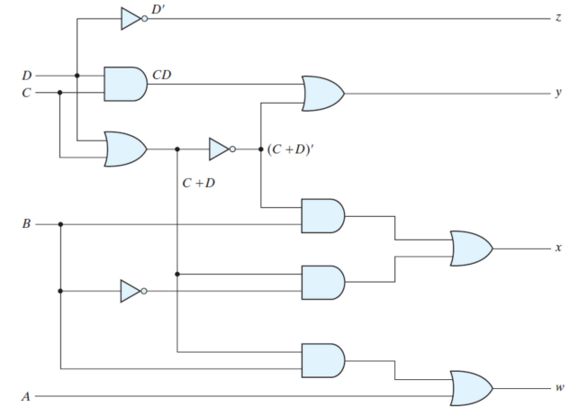 이렇게 구해진 각 변수에 해당하는 부울 함수를 AND와 OR, NOT gate를 이용하여 설계한다.