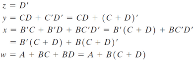 3. 앞서 정의된 함수를 반복적으로 대입하여 입력 변수로 표현되는 출력 부울 함수를 구한다.