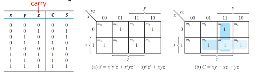 따라서 carry의 의미를 가지는 입력 하나가 더 필요하기 때문에 3개의 입력단이 필요하다. (실제로는 두 자리 bit 덧셈)