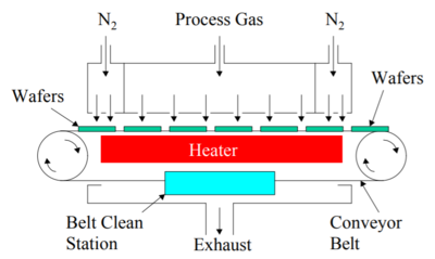 박막을 증착할 Wafer 또는기판을 Tray, Conveyor Belt 위에 올려 이동하면서 공정을 진행한다.