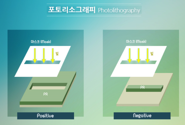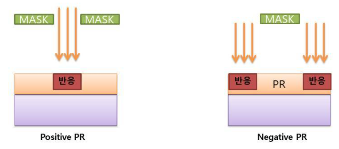 감광제 PR은 두가지의 종류인 Positive와 Negative라는 이름으로 나뉘어진다.