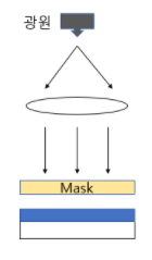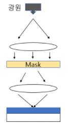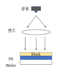 이로 인해 광원에서 나오는 빛을 랜즈로 모아 Mask로 보내고, Mask에서 통과한 빛을 우리가 미세화 시키고 싶은 만큼 랜즈로 초점을 조절해서 PR 위에 조사할 수 있도록 한 방식이다.