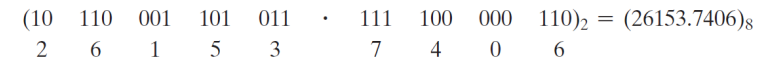 예를 들어 (10110001101011.111100000110)2 라는 binary number가 있다고 해보자. 이 때 우리는 octa number로 변환 할 것인데, 이 때 octa number의 각 digit은 binary number의 3자리 digit으로 표현 가능하다.
