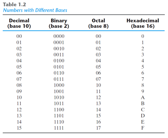 디지털 공학에서 가장 중요한 수의 체계는 2진수(binary) 8진수(octal) 10진수(decimal) 16진수(hexadecimal)이다.