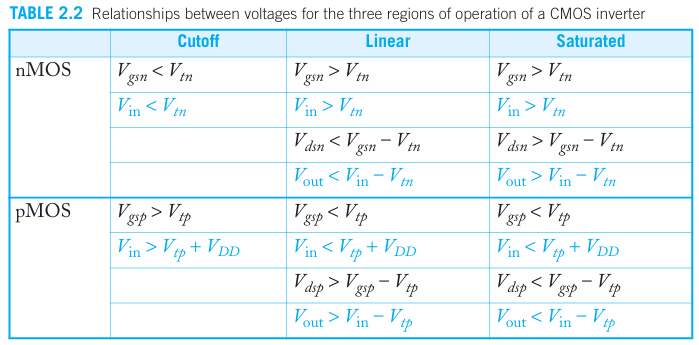 PMOS, NMOS 의 각 동작 상태 조건을 가지고 있다