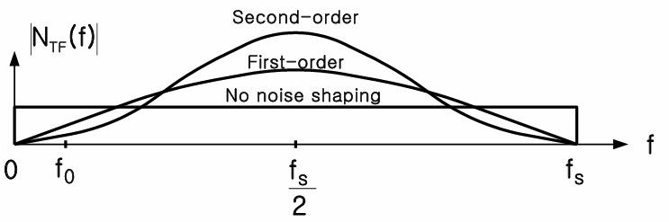 2차 noise shaping은 1차에서와 달리 NTF의 형태가 제곱으로 나타난다.