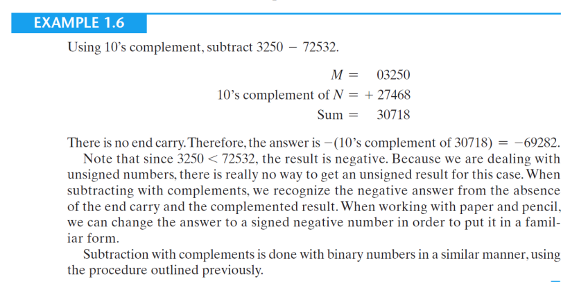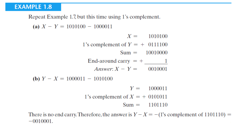 예제로 직접 풀어보면 훨씬 쉽다는 것을 느낄 수 있다. 그냥 우리가 지금까지 해온 보수를 이용해서 피감수와 더하고. 그 앞에 end carry가 있다면 양수, 없다면 음수로 판단하고. 발생한 end carry는 버리면 그 뺄셈연산의 결과가 나온다.