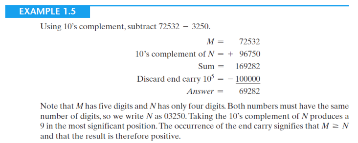 2. M ≥ N 이라면 그 합은 최종자리올림(end carry) r^n을 생성할 것이고 이것을 제외한 남은 숫자는 M - N의 결과이다.