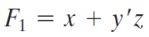 F1과 F2 함수에는 x, y, z라는 세가지 변수로 이루어져 있고. 여기서 하나의 항(term)에 있는 하나의 변수를 리터럴(literal)이라고 정의한다. 따라서 F1의 함수에는 두개의 항, 3개의 리터럴을 가지고 있다.